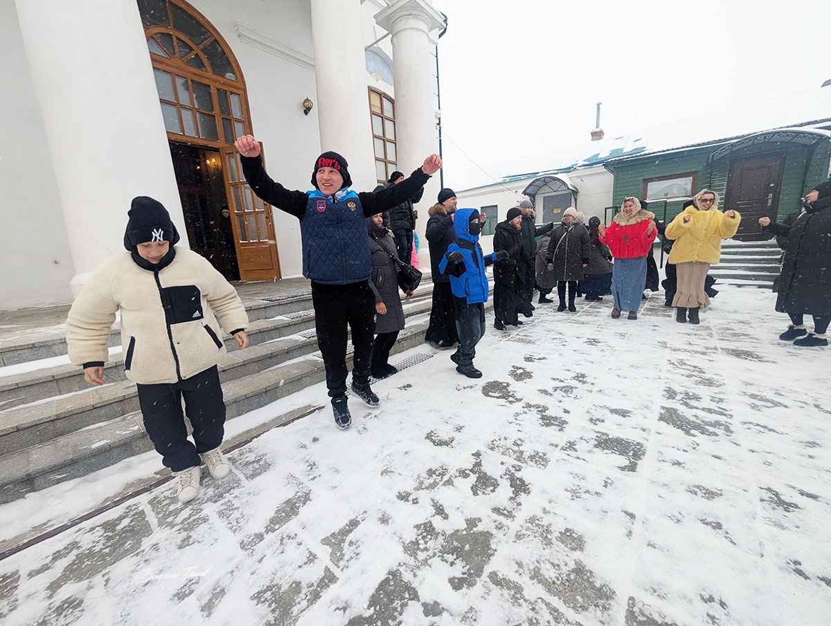 В первоянварьской чудо-гимнастике приняли участия все от мала до велика. Епископ Павел наравне со всеми старался четко выполнять упражнения, как и у всех, с его лица не сходила улыбка.